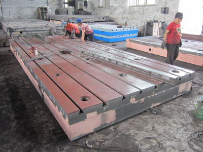 我公司專(zhuān)業(yè)生產(chǎn)加工量具及鑄件:電機(jī)試驗(yàn)臺(tái)、圓平臺(tái)、落地鏜床工作臺(tái)、火工平臺(tái)、檢驗(yàn)平臺(tái)、劃線平臺(tái)、鉚焊平臺(tái)、裝配平臺(tái)、動(dòng)力機(jī)械震動(dòng)試驗(yàn)臺(tái)(又稱(chēng)槽鐵或地梁、地軌)、立車(chē)工作臺(tái)、龍門(mén)銑刨床工作臺(tái)、機(jī)床床身鑄件、立柱、橫梁 機(jī)床滑座,模具墊板、鑄鐵底座和鼓風(fēng)機(jī)殼及配件、汽車(chē)模具 壓重體鑄件。我公司專(zhuān)業(yè)承接:HT200、HT250、HT300(40T/件以下的)高牌號(hào)大型鑄件與球墨鑄件均采用樹(shù)脂砂造型工藝,所生產(chǎn)的鑄件具有外觀光潔、加工余量小等特點(diǎn)。